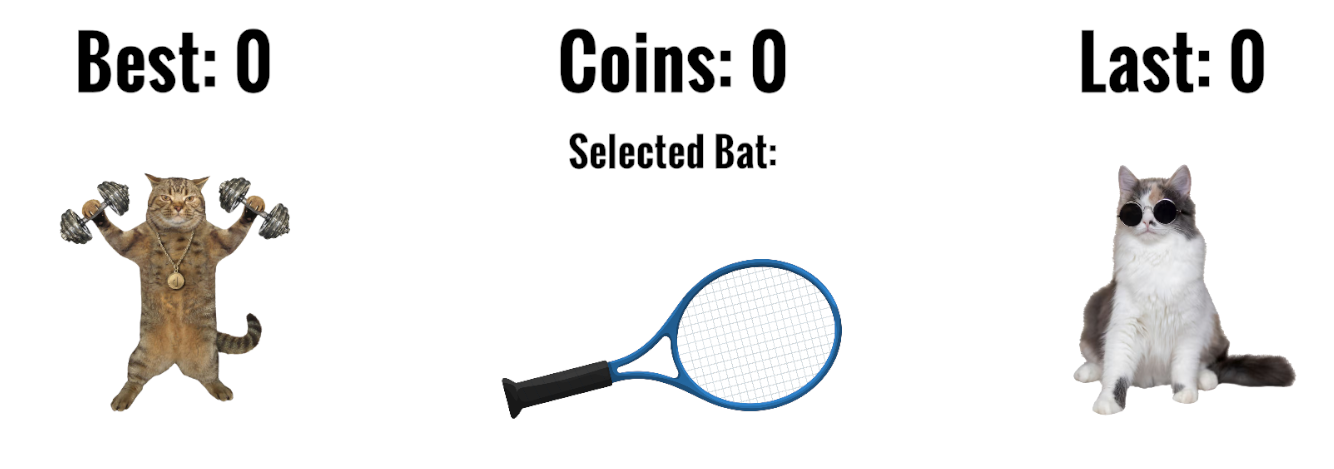 Bat Shop – unlock bats with unique stats (timing window, speed ramp, coin gain)